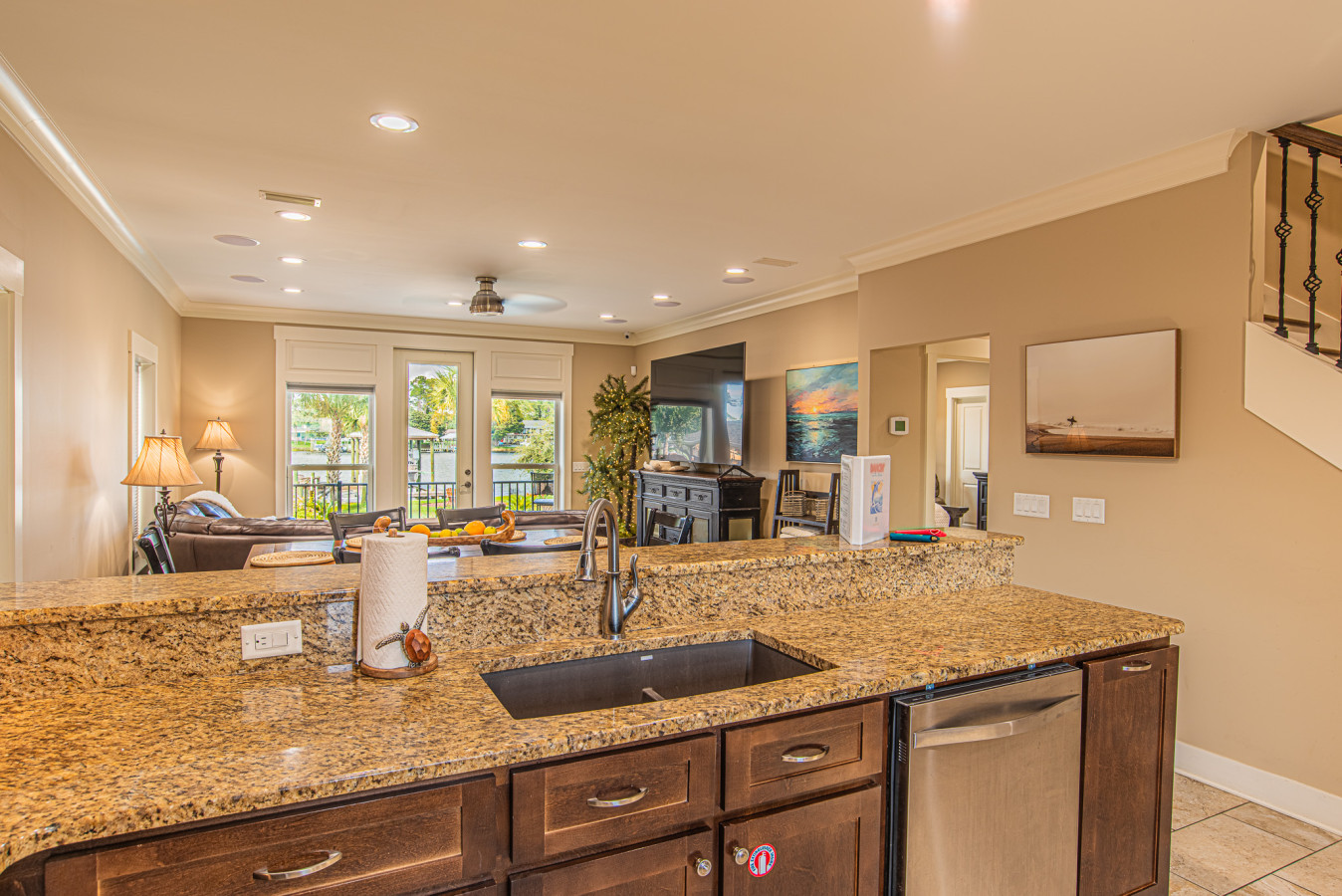 Located in a peaceful neighborhood, the home is just a short drive to beaches, local shops, and restaurants. End your day with a glass of wine on the first or second-floor decks, taking in breathtaking sunsets. Whether you’re here for family fun, a romantic escape, or a relaxing getaway, this home offers the perfect setting to create lasting memories.