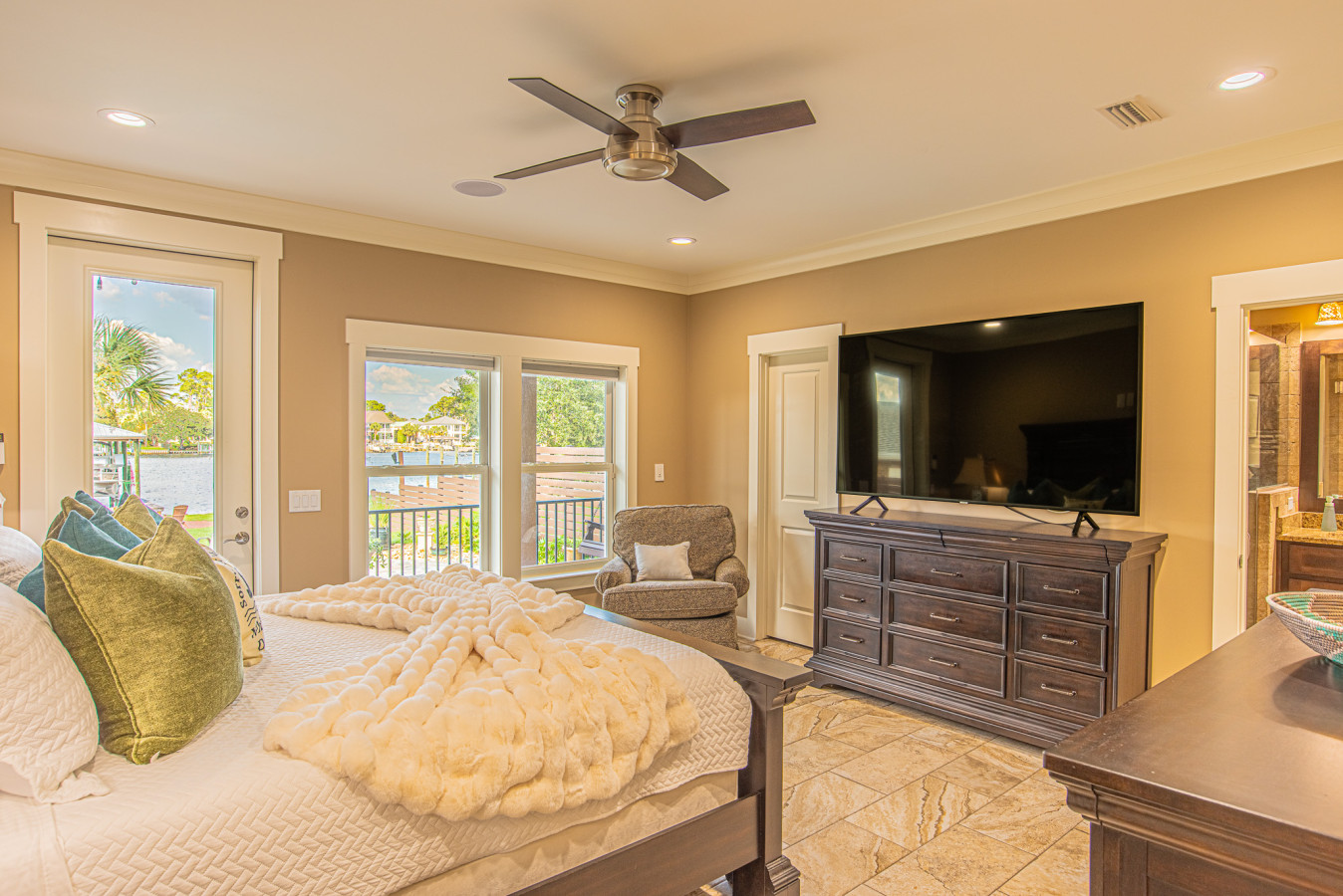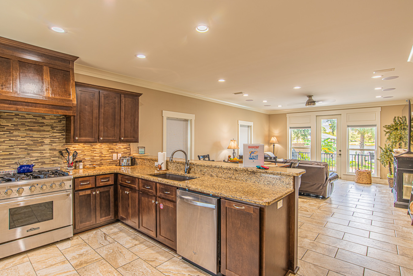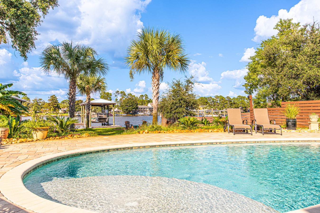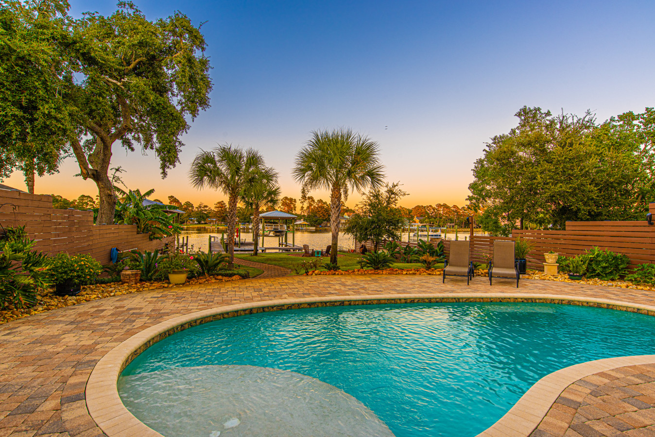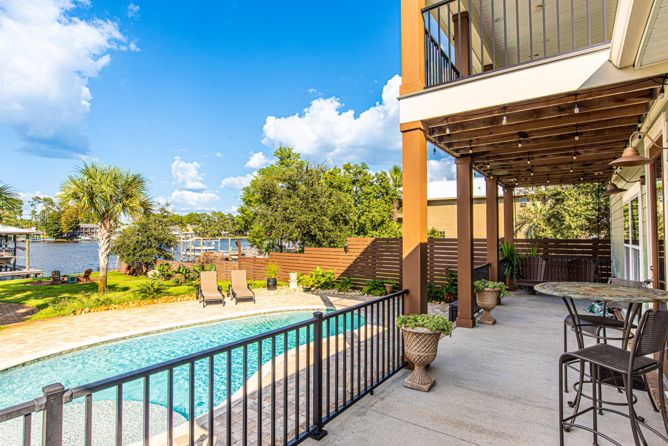 Whether you are planning a family vacation, a girls’ trip, epic fishing excursions or a couple’s getaway, this home has everything you need for a memorable stay. Did we also mention a dock with overnight boat deck, fish cleaning station, baiting tubes and access to the water for kayaking and SUP boarding. So bring the boat and keep it in the water the entire trip, just a few short minutes to the pass for deep sea fishing or stay in the bay! With multiple bedrooms and bathrooms, everyone can have their own private and comfortable space. The open floor plan is perfect for spending quality time together, whether it’s cooking a meal in the gourmet and fully equipped kitchen or relaxing in the waterfront facing cozy living room on the leather sectional. The backyard oasis is the perfect spot for entertaining and enjoying beautiful outdoor views. Take a dip in the sparkling pool, fire up the grill, and gather around the outdoor dining table for an al fresco meal. The kids will love playing in the spacious yard while the adults can unwind by the bay watching the dolphins play in the Lagoon. Located in a desirable neighborhood, this home offers peace and tranquility while still being just a short drive from all the action. Explore nearby beaches, local shops, and delicious restaurants. End your day with a glass of wine on the first or second floor decks, overlooking stunning sunset views. No matter what brings you to this amazing space, you are sure to create unforgettable memories and have a fantastic time. So come stay at this one-of-a-kind getaway and experience the ultimate vacation!