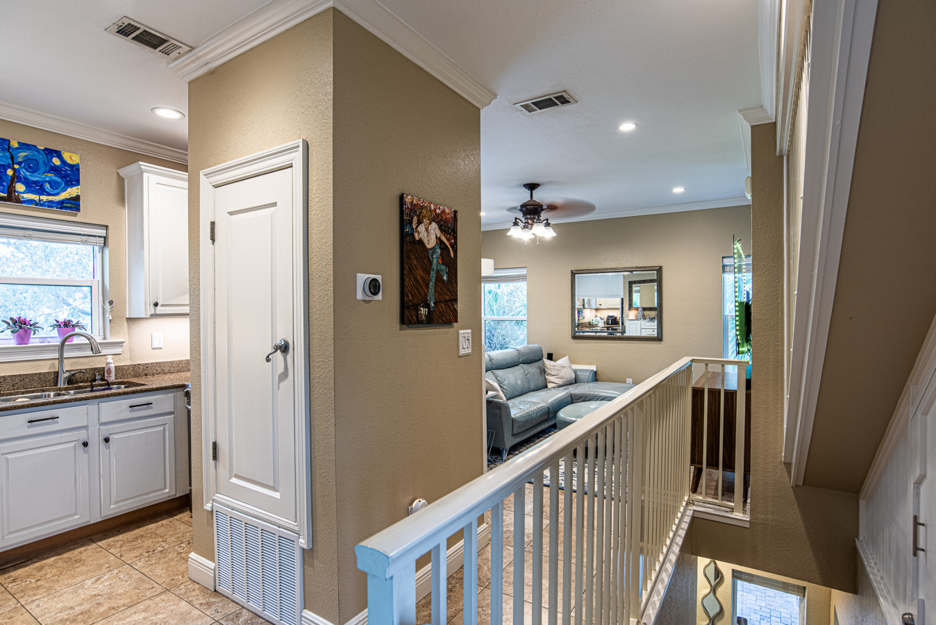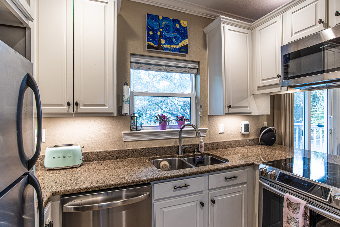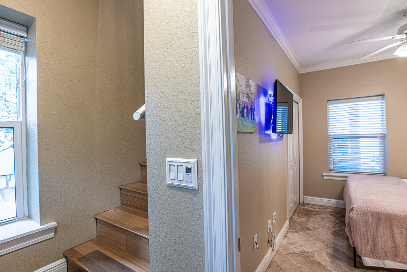 As you step inside, the first floor unveils a master suite featuring a king-sized bed and an attached full bathroom, providing a private haven of relaxation. Ascend to the second level, where your living space awaits. This area contains a fully-equipped kitchen for your inner chef, a comfortable living room to unwind, and an attached porch—the perfect spot to enjoy your morning coffee or an evening cocktail. For added convenience, a washer and dryer are also available on this floor.The third and topmost floor houses two elegantly appointed bedrooms; one boasts a cozy queen-sized bed, while the other features another king- bed. These rooms are complemented by a large shared bathroom.