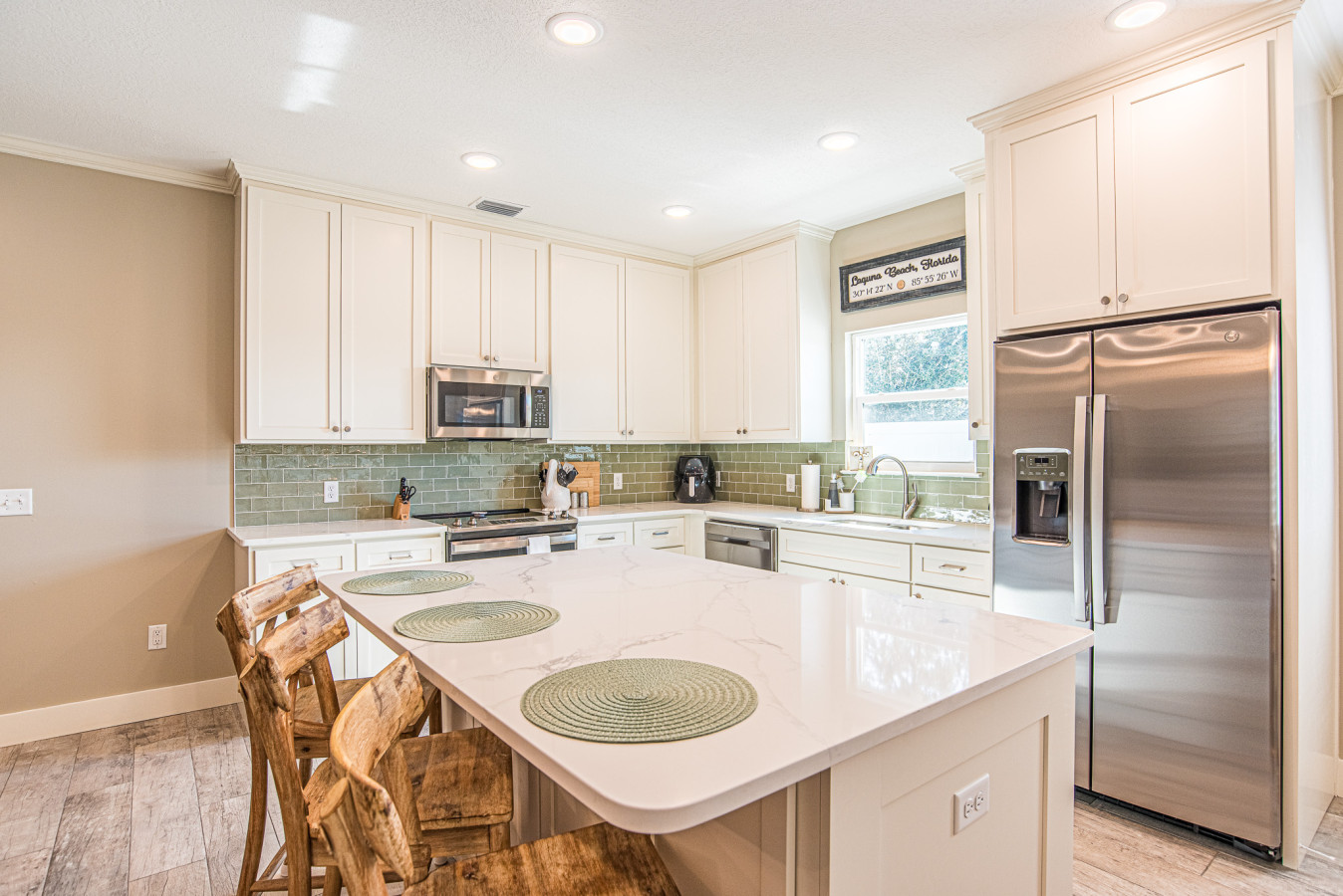 -Cook up a feast in the fully equipped kitchen with stainless steel appliances and a spacious quartz breakfast bar/kitchen island