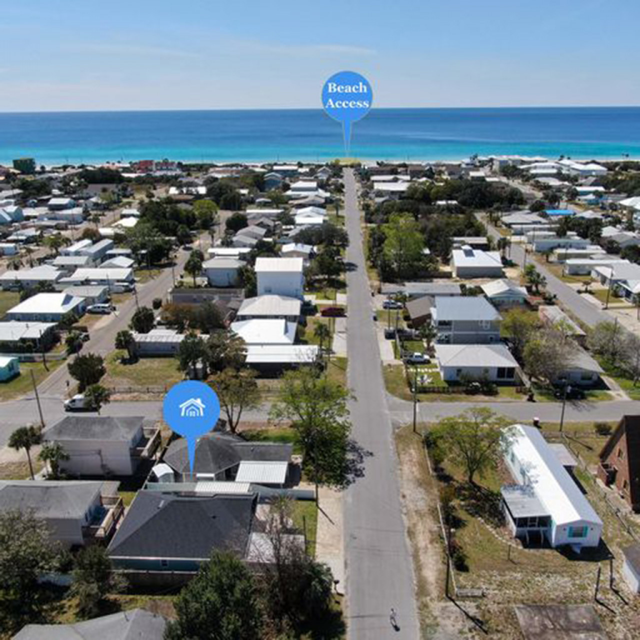 This house is a 5-minute drive to Pier Park and all it offers. Shopping, restaurants, and arcades highlight the open-air mall but remember to stroll on the pier overlooking the Gulf of Mexico. Depending on the season, there is no telling what you may see! Pier Park is also home to the Sky Wheel, where you can view Panama City Beach at 200′ in the air! It is also a 5-minute drive to Frank Brown Park, a sports complex known for tournaments almost year-round.