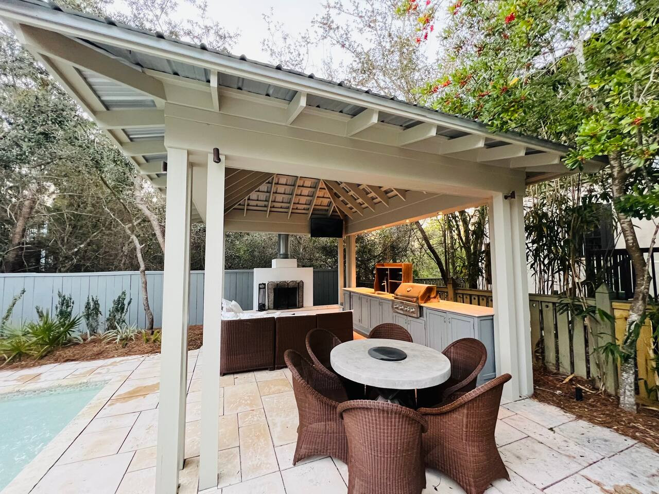 Welcome to Zen Den! This charming West Indies-style cottage is unique by design as it wraps around one of the most stunning private courtyards in Rosemary Beach. This private poolside paradise provides non-stop entertainment and fun for your entire party. It is located just north of Rosemarys Town Square on W Kingston Rd, keeping you near the action but away in the evenings for total Zen in this den.