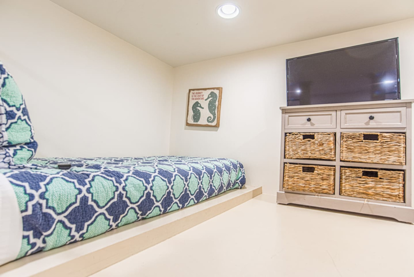 » 2 Guest King rooms both with custom-designed sky lofts each featuring two twin XL’s s and flatscreen in each.