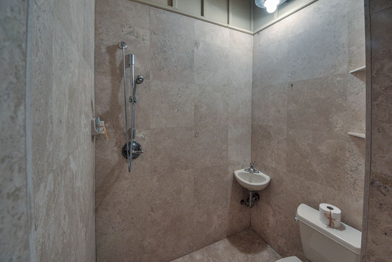 » Poolside full bathroom with hot water shower for convenience.